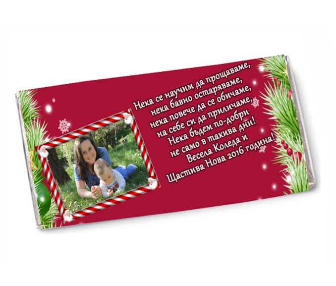 Зарадвай.ме Ви предлага един вкусен и оригинален подарък за Коледа. Изненадайте свой близък или роднина с персонализиран коледен шоколад с Ваша снимка и послание. Нека остане един прекрасен спомен.